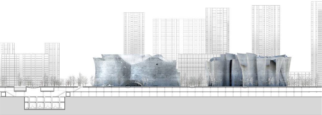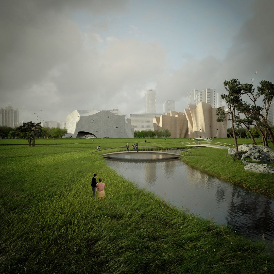 Lignan Square is a landscape park separated from the surrounding city by a massive wall of trees. The open field of this green oasis links the whole area with Canton Tower, one of the most iconic buildings of Guangzhou. A meandering walkway and a river connect the landmark buildings on both sides of this open field. The new continuation of Guangzhou main axis is closely related to lignan culture where architecture and landscape become inseparable. This close relationship between architecture and nature is carried to the new scale of Guangzhou. The buildings with their organic and sculptural appearance resemble mountains in an open rice field as it is shown in so many Chinese paintings.