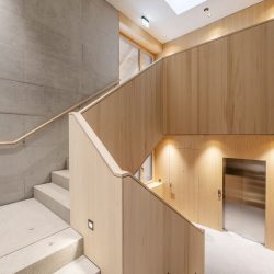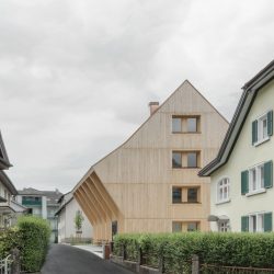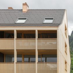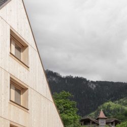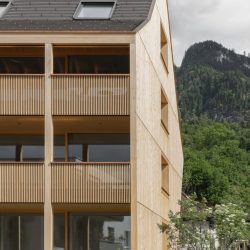 The external appearance of the house is of particular concern to us. It should naturally become part of the Hohenems urban landscape, which is why a facade system in natural wood was designed, allowing the building to “age into” the place with quiet serenity.