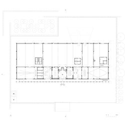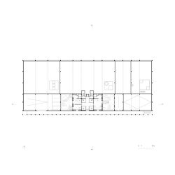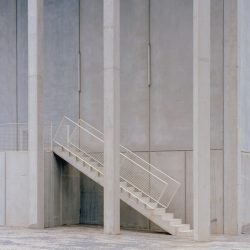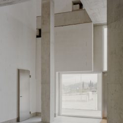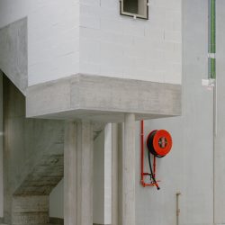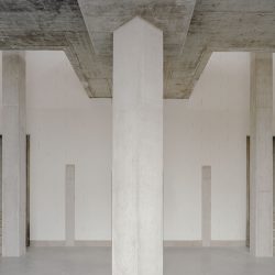It all starts with an exterior gallery to connect the three cores, implying cadence and rhythm through the pillar repetition: perhaps evoking a certain monumentality before entering the void.